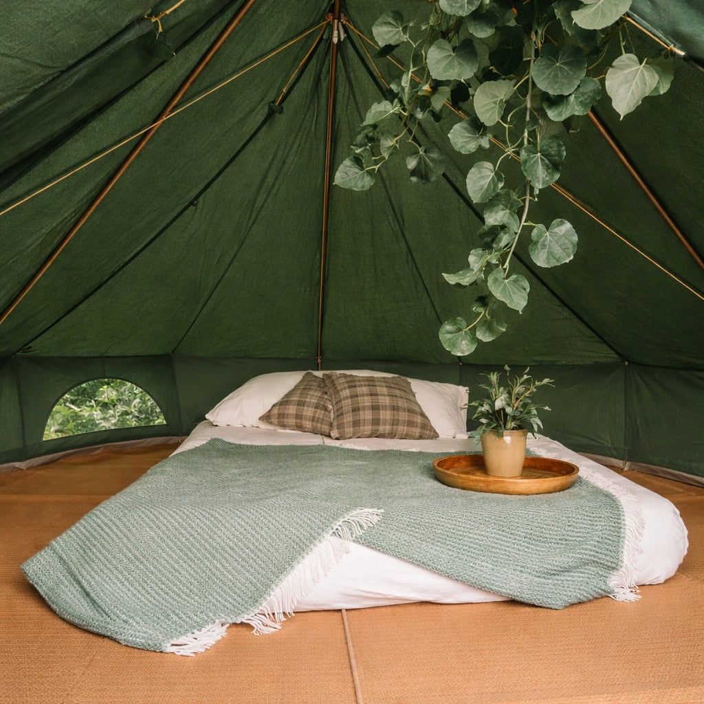 Due to its unique design the 3m Glade Bell Tent has more space than your average bell tent, meaning you can easily fit a double bed in the 3M version of this tent.