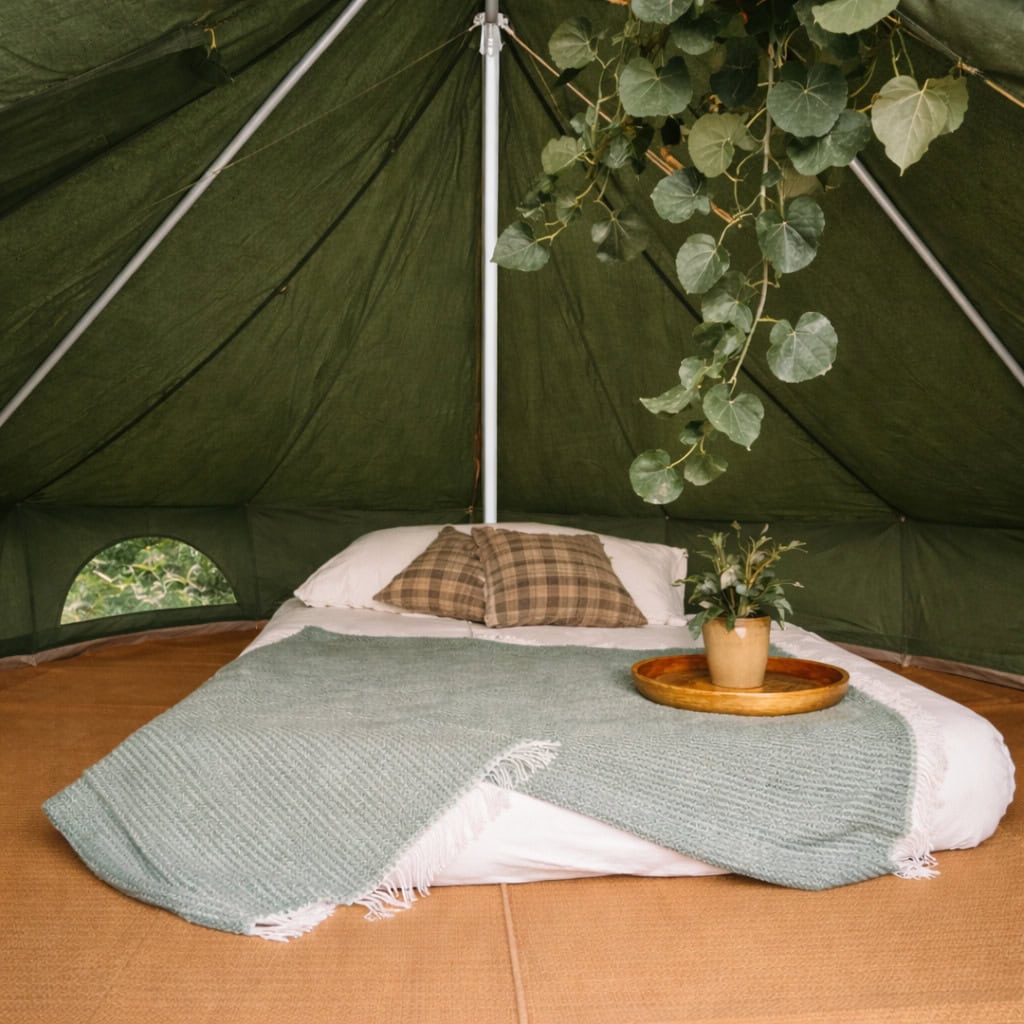 Due to its unique design the 3m Glade Bell Tent has more space than your average bell tent, meaning you can easily fit a double bed in the 3M version of this tent.