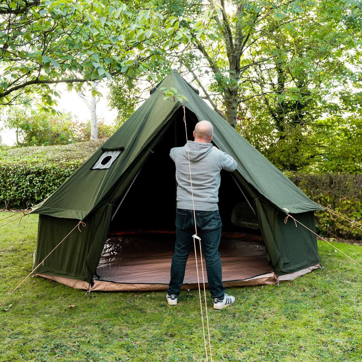 5m Kokoon Deluxe XL Bell Tent with Chimney Fitting – Olive Green – 100% Cotton canvas – New Colour