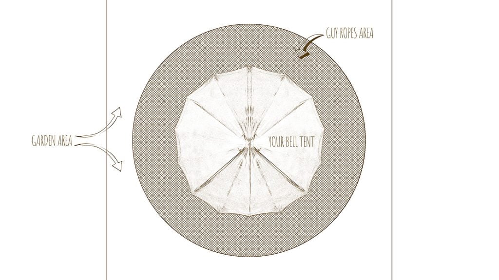 You will need an area measuring a minimum of the diameter of the tent, plus space to allow for guy ropes