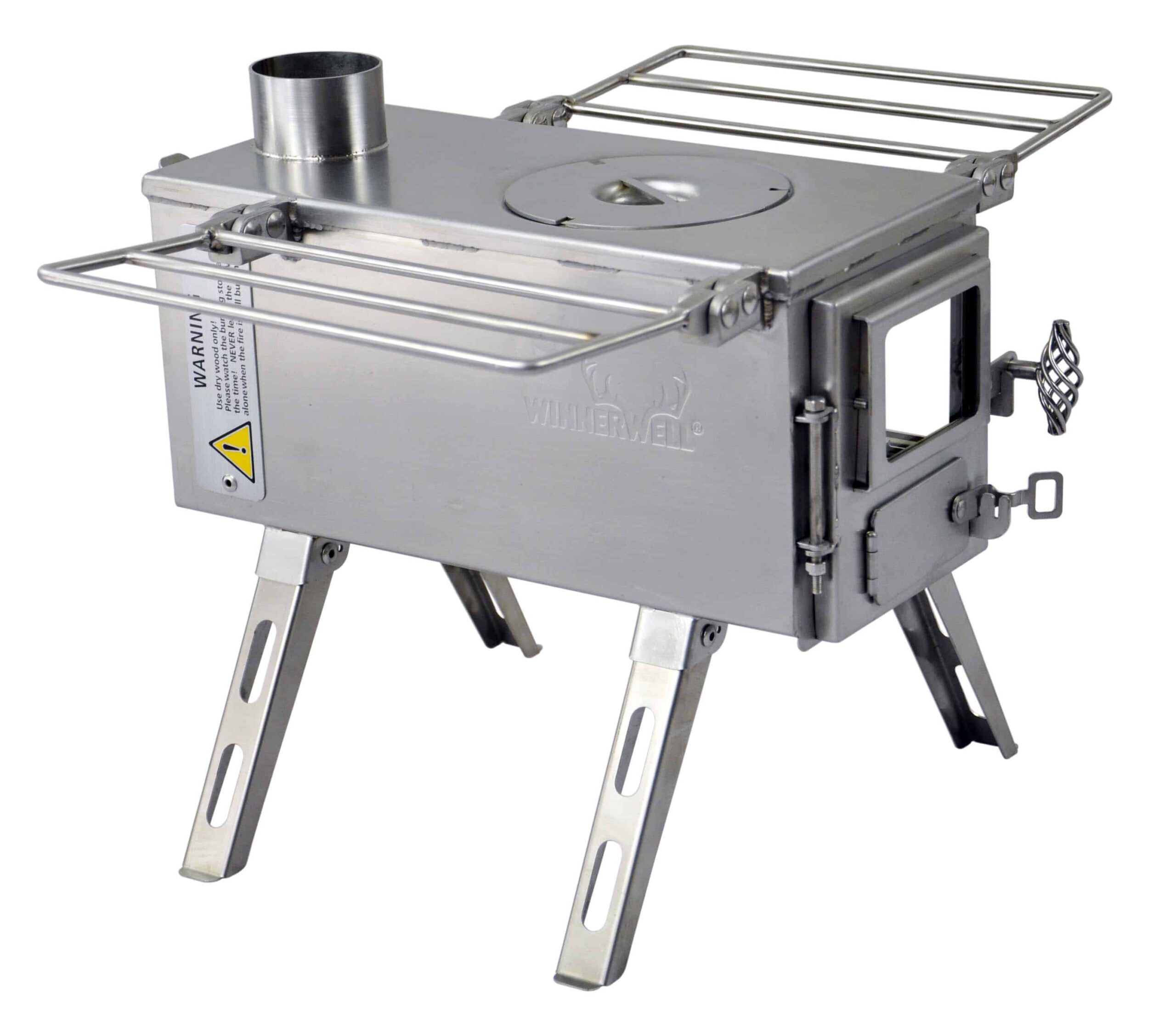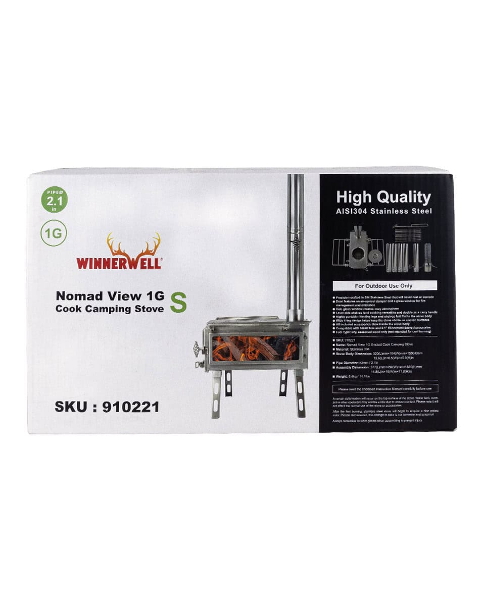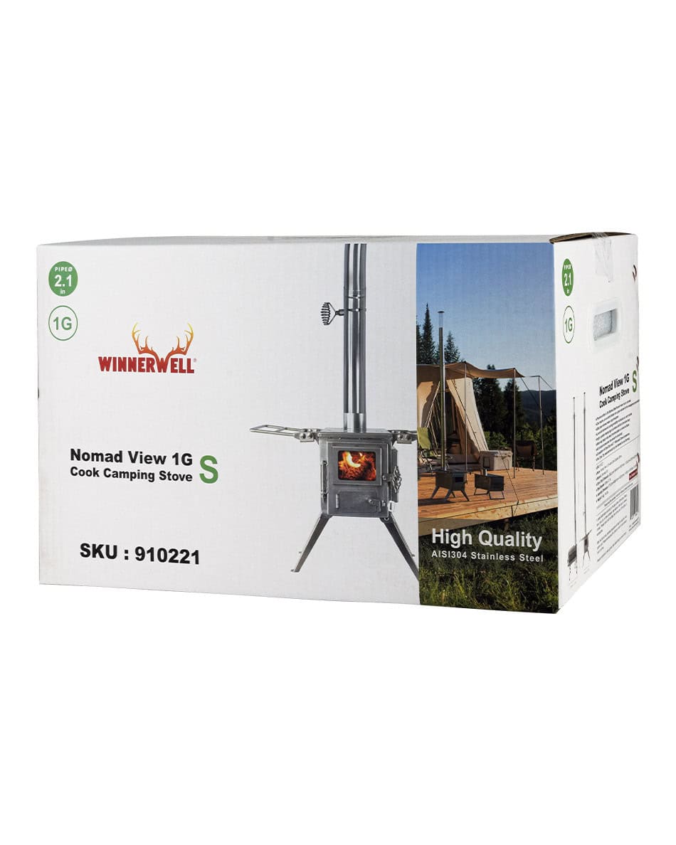 With its rectangular firebox, two viewing windows, and nesting 4-leg design, the Winnerwell Nomad View Small Wood Burning Camping Stove is truly unique in the world of portable wood stoves. Made with quality 304 stainless steel, the Nomad View is an excellent heating and cooking solution in compatible tents and a range of recreational shelters. The nesting 4-leg design gives the Nomad a smaller footprint than the Woodlanders, making it a good option for small spaces where a fireproof hearth area is used to reduce required clearances.