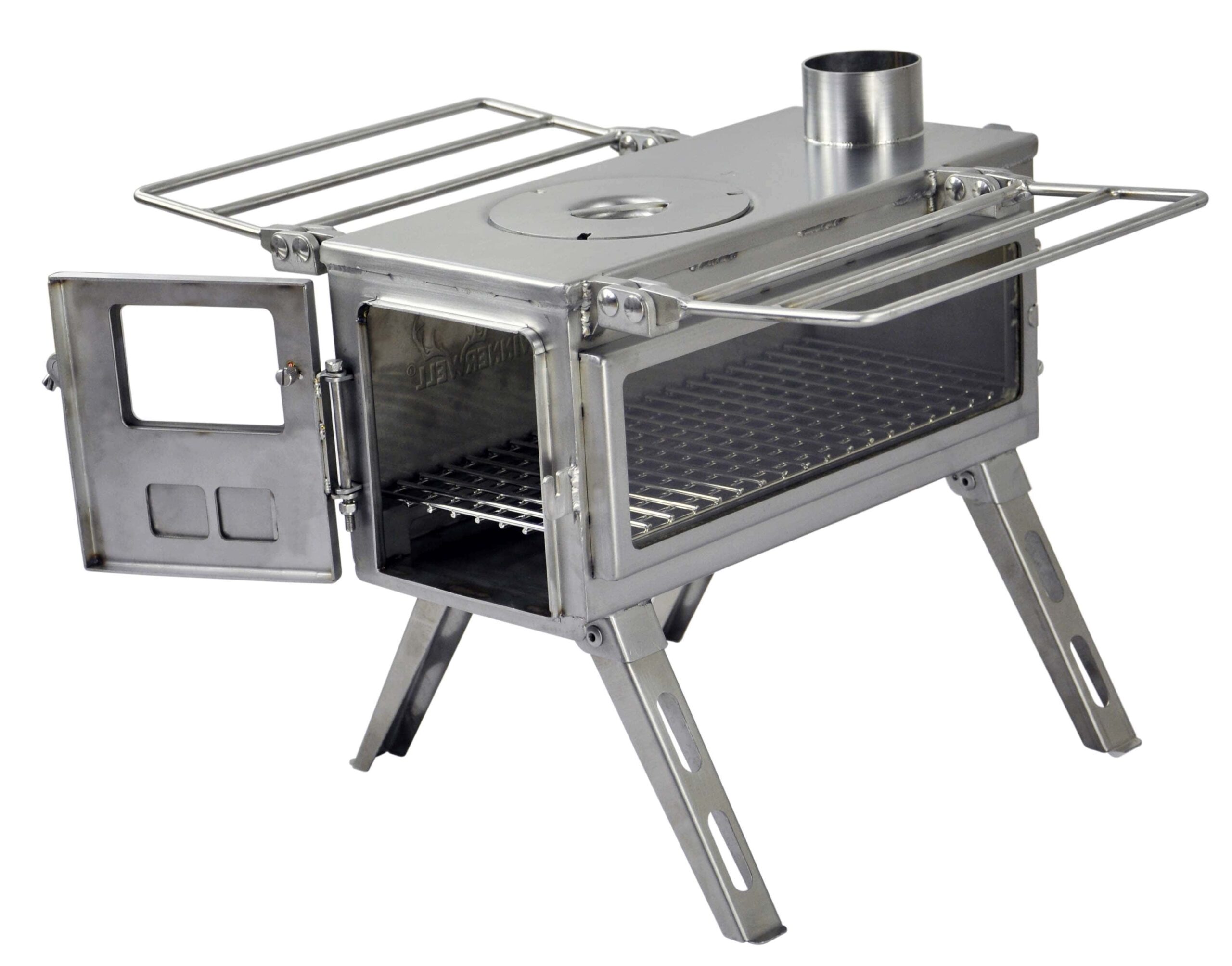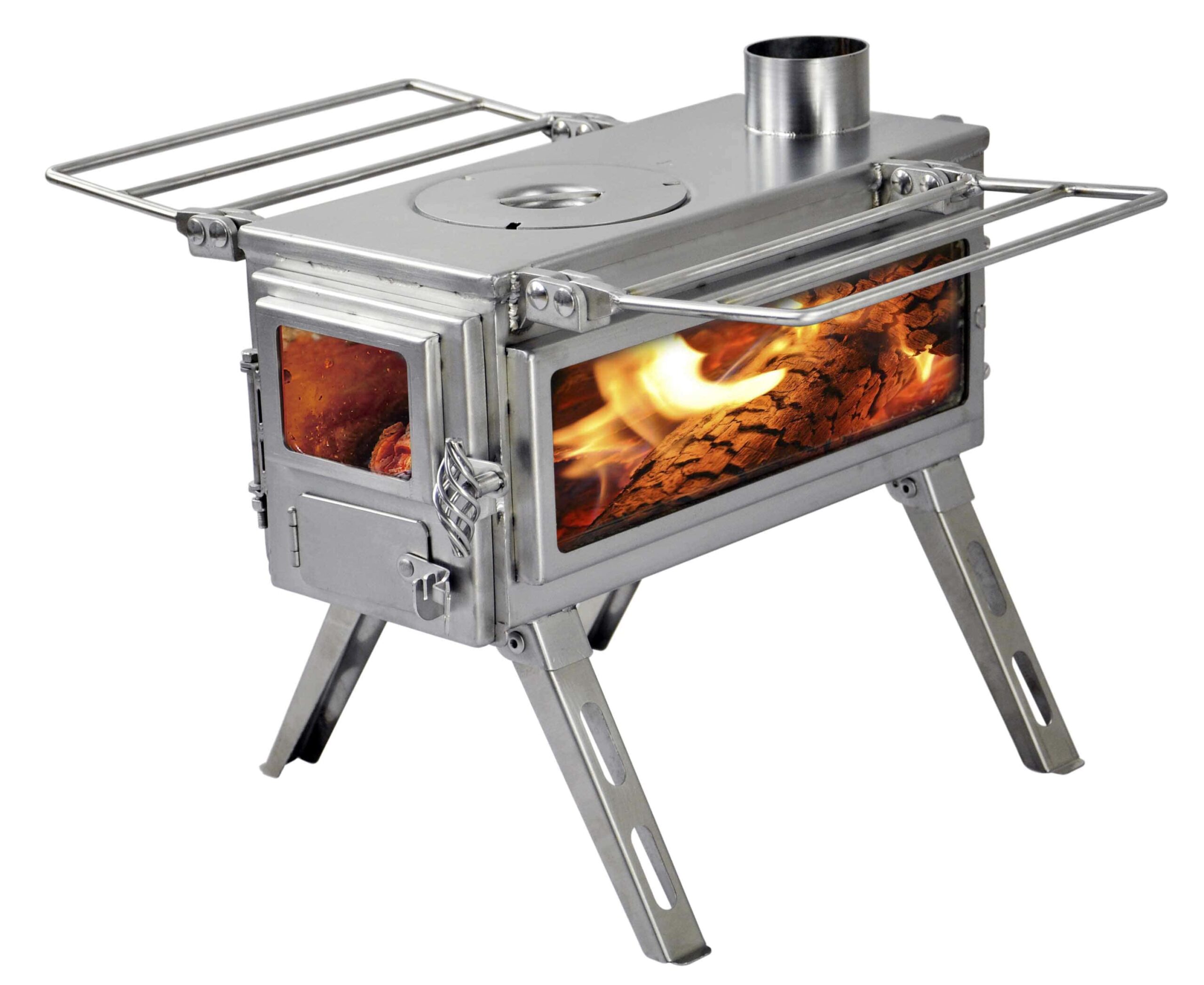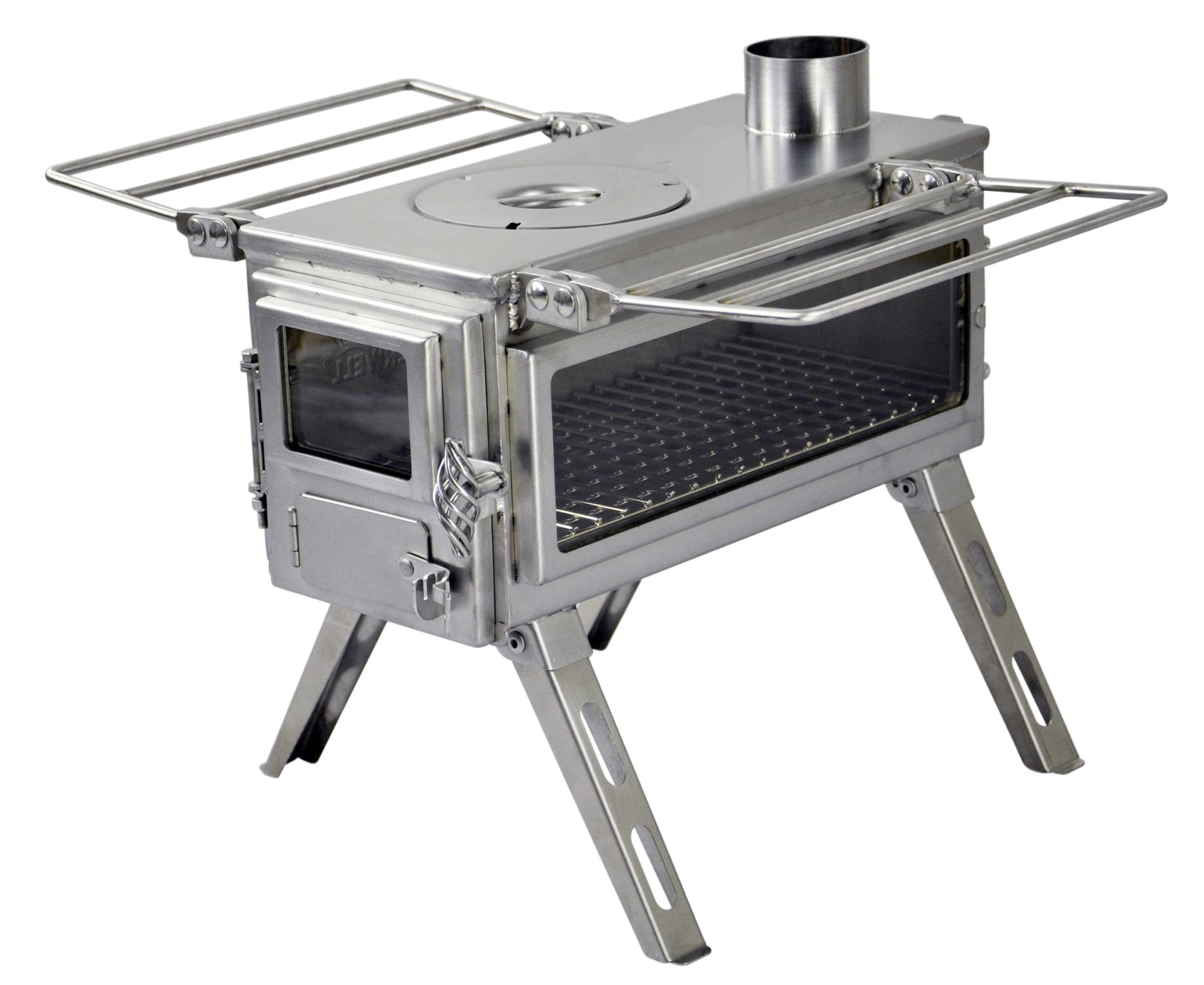 With its rectangular firebox, two viewing windows, and nesting 4-leg design, the Winnerwell Nomad View Small Wood Burning Camping Stove is truly unique in the world of portable wood stoves. Made with quality 304 stainless steel, the Nomad View is an excellent heating and cooking solution in compatible tents and a range of recreational shelters. The nesting 4-leg design gives the Nomad a smaller footprint than the Woodlanders, making it a good option for small spaces where a fireproof hearth area is used to reduce required clearances.