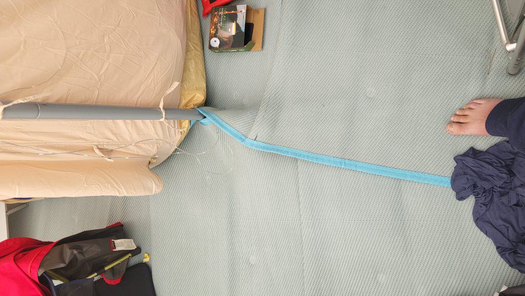 Comfy for my feet. On first use the folds are difficult to get down and couldn’t lift pole to get carpet under so a bit rucked up there. Windy and wet outside but carpets made it comfy!